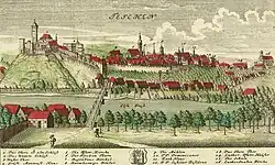 ![]() Hrad na mědirytu od Matyáše Meriana (okolo roku 1650) | |