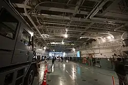 Plavidlo má průběžnou letovou palubu s velitelským ostrovem na pravoboku. V její přední části je prostor pro uložení tanků a vozidel, nakládaných pomocí jeřábu či rampy na boku lodi. Ve střední části paluby je dále možné zaparkovat dva protiponorkové vrtulníky SH-60J. V její zadní části jsou dva přistávací spoty pro dva těžké transportní vrtulníky Chinook, určené k přepravě vojáků a nákladu. Všechny vrtulníky jsou uskladněny pouze na palubě, přičemž dva výtahy jsou určeny jen pro dopravu vozidel.