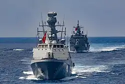 - Ukrajinské námořnictvo – Ukrajinské ministerstvo obrany v roce 2020 objednalo dvě korvety této třídy.[17] Tamní námořnictvo se dlouhodobě potýká s nedostatkem moderních plavidel.[18] Korvety staví loděnice RMK Marine. Prototypová jednotka Heťman Ivan Mazepa (F211) byla na vodu spuštěna 2. října 2022, přičemž ve stejný den proběhlo i slavnostní první řezání oceli na její sesterskou loď. Naopak odložena byla stavba dalších dvou až tří jednotek v ukrajinské loděnici Okean v Mykolajivu.[14]