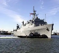 Pohonný systém tvoří dva kotle a dvě plynové turbíny, které roztáčí dva lodní šrouby. Nejvyšší rychlost je 22 uzlů a dosah 14 800 námořních mil při 12 uzlech.[3]