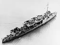 | Výzbroj | Po dokončení: 4 x 102 mm (4"/50 Mark 9) (4xI) 12 x 533 mm torpédomety (4xIII) pro torpéda Bliss-Leavitt 21" Mark 8[2] 2 x skluzavka hlubinných náloží Mk 6 a Mk 9 |