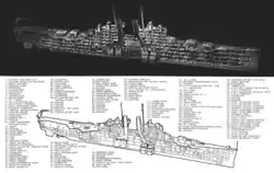 | Výzbroj | 12× 152mm kanón (4×3) 12× 127mm kanón (6×2) 8× 40mm kanón (4×2) 13× 20mm kanón (13×1) |