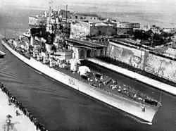 Roku 1943 byly odstraněny kulomety.[3] V letech 1945–1946 byly sejmuty torpédomety a katapulty. Upraveno bylo složení výzbroje. V letech 1950–1953 proběhla modernizace. Upravena byla nástavba, instalovány byly americké radary, demontovány byly obě třídělové věže a novou lehkou výzbroj představovalo dvacet čtyři 40mm kanónů. Po demontáži dvou kotlů klesl výkon pohonného systému na 85 000 hp a rychlost na 29 uzlů.[2]