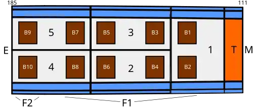 F1 – skupina kotlů, jejichž spaliny odváděl přední komín