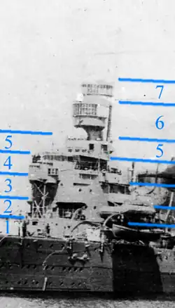 | Ostatní | Po dokončení: 3× 90cm světlomet typu SU 2× 40cm navigační světlomet 2× dělostřelecký zaměřovač typu 14 2× torpédový zaměřovač typu 14 2× sokutekiban typu 13 2× henkjo ricuban typu 11[p 3] 4× 3,5m dálkoměr typu 14 1× směrový radiozaměřovač Kako od 1932, Furutaka od 1933 navíc: 2× 2m dálkoměr typu Barr & Stroud 2× systém řízení protiletadlové palby typu 91 Po rekonstrukci:[p 1] 3× 110cm světlomet typu 92 2× zaměřovač světlometů typu 94 2× navigační světlomet 2× 1,5m navigační dálkoměr typu 14 2× dělostřelecký zaměřovač typu 94 3× 6m dálkoměr typu 14 1× sokutekiban typu 92 1× balistický počítač typu 92 2× systém řízení pl. palby typu 91 2× 4,5m pl. dálkoměr typu 94 2× protiletadlový zaměřovač typu 95 2× torpédový sokutekiban typu 93 2× torp. zaměřovač typu 91 model 3 2× panel řízení palby typu 92 1× torpédový počítač typu 93 1× směrový radiozaměřovač Od 1941 navíc: Demagnetizační cívky[8] |