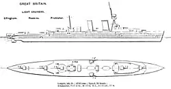 | Pancíř | Po dokončení: 76 mm boční pás 35 až 51 mm muniční sklady 32 až 35 mm střední paluba nad kotelnami a strojovnami 48 mm horní paluba nad kotelnami a strojovnami[1] 12,7 až 25 mm kormidelna (stěny a strop)[4] celkem necelých 1200 t pancíře[1] Po rekonstrukci navíc:[p 1] 36 mm kormidelna 10 mm navigační můstek 57 mm barbety nad skladovací palubou[5] |