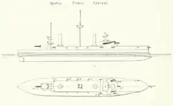 | Hydra | Graville | 1887 | 15. května 1889 | 1892 | Vyškrtnuta 1919. Dělostřelecká cvičná loď 1922, do šrotu 1929. |