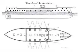 | Don Juan d'Austria | STT | 14. února 1874 | 25. října 1875 | 26. června 1876 | Vyřazena 1904. Přestavěna na oprávárenskou loď Vulkan. Po světové válce zkonfiskována Itálií a později přisouzena Jugoslávii, která ji však nepřevzala a další osud plavidla je nejasný. |