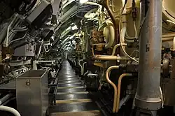 Pohonný systém tvořil jeden tlakovodní reaktor, zásobující přes parní generátor dvojici parních turbín. Pomocný dieselelektrický agregát sloužil jako pomocný pohon v případě nouze. Lodní šroub byl jeden. Nejvyšší rychlost ponořeného člunu dosahovala 25 uzlů.