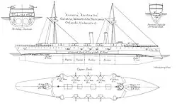 | Výzbroj | 2× 234mm kanón (2×1) 10× 152mm kanón (10×1) 6× 57mm kanón (6×1) 10× 47mm kanón (10×1) 6× 457mm torpédomet |