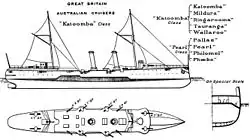 | Katoomba (ex Pandora) | Armstrong, Elswick | 1888 | 27. srpna 1889 | 24. března 1891 | Prodán do šrotu 1906. |