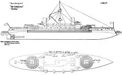 | Sicilia | Arsenale di Venezia | 3. listopadu 1884 | 6. července 1891 | 4. května 1895 | Vyřazena 1914. Za války byla reaktivována jako mateřská a opravárenská loď se základnou v Tarantu. Vyřazena 1923. |