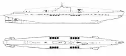 | Výzbroj | 1× 75mm kanón 2× 13,2mm kulomet (1×2) 3× 550mm torpédomet (5 torpéd) 2× 400mm torpédomet (2 torpéda) 32 námořních min |