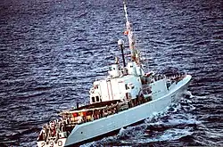 | Výzbroj | 4× 76mm kanón (2×2) 2× 40mm kanón (2×1) 2× Mk 10 Limbo (2×1) 2× torpédomet Mk 2 (2×1) |