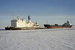 Na zádi je umístěna přistávací plocha pro vrtulník Kamov Ka-32. Pohonný systém využívá jeden jaderný reaktor KLT-40M (32,5 MW). Má výkon 51 000 hp. Roztáčí tři lodní šrouby. Nejvyšší rychlost dosahuje 18,5 uzlu. V zaledněných oblastech překoná až 1,8 metru silný led rychlostí dva uzly.[1]