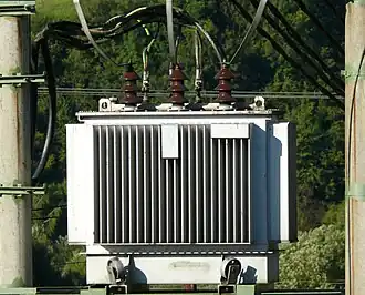 Třífázový transformátor má jádro se třemi sloupky, na jednom sloupku bývají nejčastěji dvě nebo tři cívky - vinutí. Jedná se o jeden ze základních stavebních prvků přenosové soustavy a distribuční soustavy. V přenosové a distribuční soustavě jsou používány pro úpravu hladiny napětí a tím pro snížení elektrických ztrát od zdroje ke spotřebiči. Přenos na větší vzdálenosti je výhodnější na vyšší hladině napětí a tím menším proudem. V místě spotřeby je napětí sníženo na hladinu distribuční soustavy a napětí spotřebičů odběratelů.