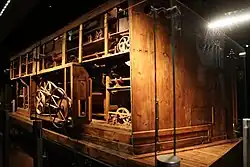Mechanismus je vyroben z bukového[9] a habrového dřeva. Některá ložiska jsou vyrobena ze zvlášť tvrdého dřeva zvaného lignum sanctum,[p 2][36] které si Josef Friml nechal dovést pražskou firmou Rott.[40] Kostra betlému je ze dřeva jehličnatých stromů (především ze smrku a jedle),[34] v roce 1972 ji zpevnila ocelová konstrukce.[36] Zdobné části (především dřevěné krajky a věžičky) si nechali vyrobit ve Švadlákově soustružnictví v Třebechovicích[23] či u mistra Podstaty.[62] Tyto části jsou vyrobeny z běžných druhů dřeva, ale i z cizokrajných ořešáků.[34] Betlémáři Švadlákovým dovezli za odměnu dříví z lesa.[23] Kromě dvou kovových zvonečků, koženého měchu u kukačky a kožených hnacích řemenů je betlém celý ze dřeva.[34] Mechanismus tvoří přes tři sta dřevěných soukolí[63] a 152 ozubených kol o průměru 10–60 centimetrů.[36] Původně byl uváděn do pohybu ručně klikou,[36] tu v roce 1935 nahradil elektrický motorek.[18]