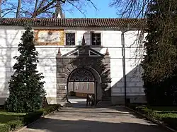 Pozoruhodné jsou i brány do velkého (vnějšího) zámeckého nádvoří, Jižní, zastavěná do zámeckého areálu (směrem ke katovně, psí kuchyni a městskému gotickému opevnění), renesanční Severní do Masarykova náměstí a východní u Hamiltonova paláce vedoucí do Krčínovy ulice k domu Krčínovu, bývalé třeboňské synagoze (Třeboň I čp. 50), židovské škole (čp. 49/I) a protější Zámecké restauraci na Kozím rynku (Žižkově náměstí). Tato místa navštívil též při své první oficiální návštěvě Třeboně v roce 1919 prezident Masaryk.[1]