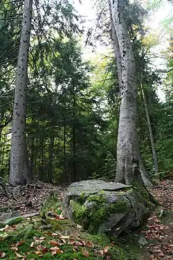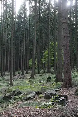![]() Skalní výchozy u vrcholu Třemešného vrchu | |