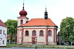Náves s obecním úřadem a kostelem sv. Mikuláše | |