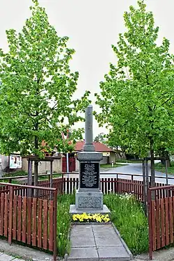 Pomník 27 vojákům z obce padlým v první světové válce byl odhalen 21. května 1923 u Lípy svobody, zasazené 3. listopadu 1918. Autorem je kamenosochař Ťoupalík ze Mšece. Na pomník obětem války přibyla bílá mramorová deska se jmény padlých a umučených za druhé světové války.