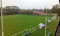 Ovocný sad se od fotbalového hřiště liší v jedné zásadní věci - rostou na něm stromy. Členové vznikajícího fotbalového oddílu tak museli nejprve vykopat více než čtyřicet polosuchých stromů. Tím však tvrdá práce neskončila. Když byly stromy pryč, projevil se v plné nahotě sklon terénu, který se výrazně svažoval směrem od dráhy k sálu. Před natěšenými fotbalisty tak stál další úkol - pokusit se terén vyrovnat alespoň tak, aby jim na trávníku neutíkal míč od nohy. I to se celkem podařilo. Hřiště je však dodnes mírně svažité. Fotbalisté však ještě neměli vyhráno. Bylo potřeba dalšího jednání s majitelem sousední parcely, aby mohlo být hřiště rozšířeno a splňovalo všechny potřebné regule. Cesta k fotbalovému hřišti Dynama byla obtížnější, než by se mohlo na první pohled zdát.