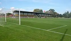 Nachází se na opačném západním okraji města, vklíněné mezi zástavbu ulic U Hřiště a M. Šolochova a potůček Caja. Rozměry jsou 103 x 65 metrů (tedy o něco menší než Na Šlajsi), kapacita je 1500 diváků (krytá tribuna pro 250 diváků).[13] Hřiště pamatuje nejslavnější dobu lanžhotského fotbalu, postupně však přestalo vyhovovat požadavkům. Využíváno je nadále k tréninkům všech kategorií a dále k zápasům B-mužstva.