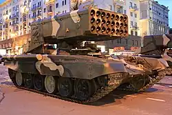 ![]() BM-1 - ruský 24-hlavňový raketomet, součást systému ТОS-1A | |