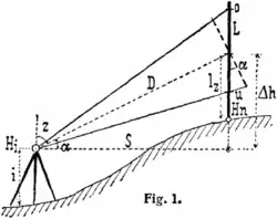 Starší metoda, při které se používá teodolit s nitkovým dálkoměrem, tzv. tachymetr a tachymetrická, nebo nivelační lať. Vzdálenost se odečítá na lati pomocí dálkoměrných rysek. Lze použít i autoredukční tachymetr, který určuje přímo vodorovnou vzdálenost, nebo diagramový tachymetr, určující přímo vodorovnou vzdálenost a převýšení.