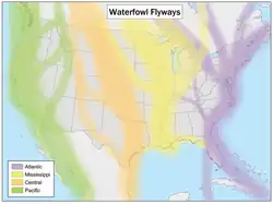 - ↑ Flyways [online]. U.S. Fish & Wildlife Service [cit. 2022-01-29]. Dostupné v archivu pořízeném dne 2022-01-29. (anglicky)