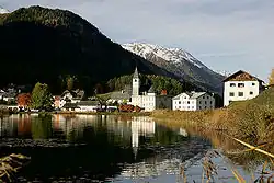 ![]() Pohled na obec s hradem Tarasp v pozadí | |