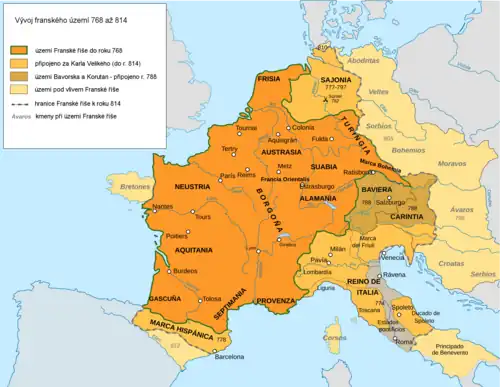 - ↑ Dle Annales regni Francorum. Někteří historici, např. K. L. Pearson, přišli s domněnkou, že mohlo dojít za vlády Karla Velikého k pozdější úpravě textu tak, aby se tím zdůvodnil nárok onoho na vládu v Bavorsku.