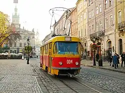 Tramvaj Tatra T4SU ve Lvově na Ukrajině