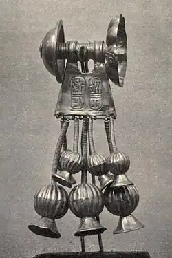 Zlaté náušnice Tausret; foto Emil Brugsch 1913