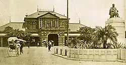 První dočasná stavba nádraží byla otevřena v roce 1891 poblíž města Twatutia, později součástí Tchaj-peje, jako zastávka na první tchajwanské železnici propojující města Ťi-lung a Sin-ču. V roce 1901, šest let po převzetí Tchaj-wanu Japonskem byla vystavěna první stálá nádražní budova na místě zbořeného městského opevnění. V roce 1940 byla přestavěna a rozšířena jako reakce na zvyšující se počet cestujících.[2]