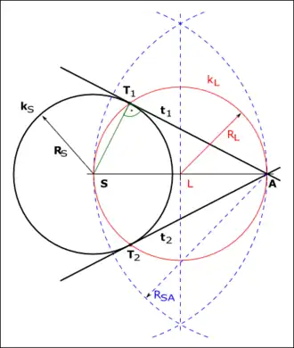 Konstrukce tečny ke ružnici kS procházející daným bodem A .