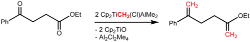 Jiným způsobem je použití dimethyltitanocenu:[7]