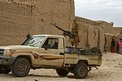 Libyjský technical s protiletadlovým dvojkulometem ZPU-2 ráže 14,5 mm. -