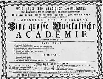 Základní hudební vzdělání získala Tekla Podleská zprvu u berounského učitele a regenschoriho Josefa Nechanického a následně se školila ve zpěvu u kantora Jana Františka Hataše, kapelníka místní plukovní hudby v Mníšku pod Brdy. V roce 1775 odešla do Lipska, kde se školila ve zpěvu u hudebního skladatele Johanna Adama Hillera v jeho hudební škole a během studia příležitostně koncertovala. Téhož roku vystoupila se svojí sestrou Marií v Karlových Varech.