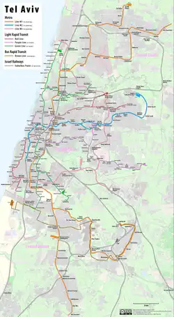 Obrázky, zvuky či videa k tématu Telavivské metro na Wikimedia Commons - Mapa budoucího systému telavivské rychlodráhy (hebrejsky)