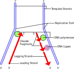 V průběhu procesu se poslední RNA primer připojí a s DNA polymerázou a RNA nukleázou a DNA ligázou v procesu konvertují RNA (primeru) na DNA na zapečetění mezer mezi Okazakiho fragmentem. Z důvodu pozměnění RNA na DNA, musí již být přítomné vlákno DNA před úsekem RNA primeru. To se děje na všech místech zaostávající části, neděje se to však na konci, kde je přichycen poslední RNA primer. Nakonec , je tato RNA zničena působením enzymu, který degraduje zbylou RNA v těsné blízkosti umístěné na DNA. Proto je část telomery ztracena při každém cyklickém procesu replikace na 5´konci zaostávající části dceřiného vlákna od původního vlákna. Studie s experimenty provedenými ve zkumavkách poukázali, že telomery jsou vysoce citlivé na oxidační stres. Je důkaz o zprostředkovaném poškození DNA oxidačním procesem, na který je poukazováno jako důležitý, determinant zkracování telomery. Zkracování telomer vlivem volných radikálů vysvětluje rozdíl mezi předpokládanou ztrátou koncového replikačního problémového segmentu (c. 20 bp) za dělení buněk a skutečného zkrácení telomer. Zkrácení telomer, které probíhá v rozmezí 50–100 bp, a to má mnohem větší dopad na délku telomer, než zkrácení koncovým replikačním problémem, segmentu. Některé studiu se zaměřili na interakce mezi přírůstkem antioxidantů a délkou telomer. V LIBCSP, studii rakoviny prsu na Long Islandu byl nalezen střední nárůstek rizika vzniku rakoviny prsu u žen s nejkratšími telomerami a nízkého doplňování Beta-karotenu. Dále vitamínu C a E, to dle autorů dokazuje, že určitá míra interakce rizika vzniku rakoviny prsu a s mechanismy při poškozování DNA, souvisí s přítomností zkrácených telomer, způsobené oxidačním stresem. Zkracování telomer je často spojováno s procesy stárnutí a nemocemi stáří. V roce 2003 objevil Rochard Cawthon, dle jeho studie to, že jedinci s delšími telomerami vedou delší život, než jedinci s kratšími telomerami. Nicméně, není známo jestli krátké telomery jsou znakem stáří jednotlivé buňky, nebo se prakticky podílejí na stárnutí samém. Souvislost se střední délkou života se však prokázala u více druhů.[6]