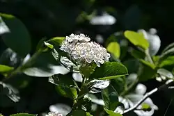 ![]() Nakvétající temnoplodec černoplodý v parku (Aronia melanocarpa) | |