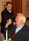 ![]() Fyzik Bernard d'Espagnat přijímá cenu za rok 2009 od vévody z Edinburghu, prince Philipa | |