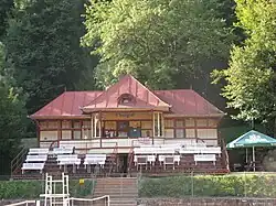 Tenisový pavilon je dřevěná stavba ve svahu nad tenisovými kurty v blízkosti lázeňského centra Luhačovic.[1]