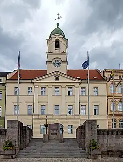 ![]() Schody před starou radnicí, na nichž se konflikt odehrál | |