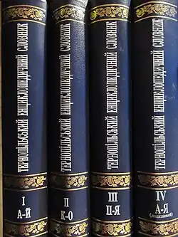 Obrázky, zvuky či videa k tématu Ternopilskyj encyklopedyčnyj slovnyk na Wikimedia Commons - 1 (první), 2 t., 3 t., 4 t.