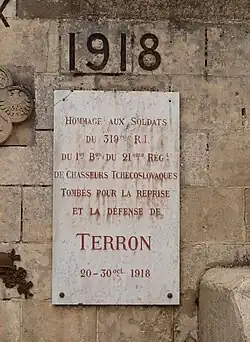 V závěru 1. světové války se k ofenzivním operacím francouzské a americké armády na západní frontě připojila i Československá brigáda, jejíž 21. a 22. pěší pluk Československých legionářů byl připojen k 53. pěší francouzské divizi. 20. října 1918, během útoků v okolí Terronu, se podařilo prvnímu praporu 21. pluku pod vedením Otakara Husáka obec obsadit. Následným německým protiútokem byl sice dočasně vytlačen z vesnice, ale po připojení druhého praporu v noci 22. října se již podařilo ztracené pozice ubránit.[8] Na paměť padlým československým vojákům byl v obci vybudován památník.[9]