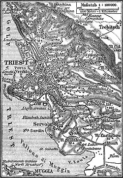 - ↑ GuVBl. für das österreichisch-illirische Küstenland Nr. 44/1908, s. 197, http://alex.onb.ac.at/cgi-content/alex?apm=0&aid=lkt&datum=19080004&zoom=2&seite=00000197&x=18&y=9