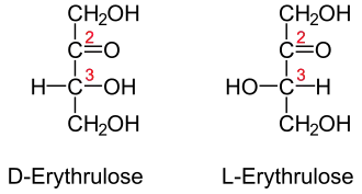Aldotetrózy mají dva chirální uhlíky, takže existují čtyři různé stereoizomery, z nichž se přirozeně vyskytují pouze D-erytróza a D-treóza.