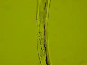 Vlákno bavlny 400 x zvětšené (cca 1,7 dtex)